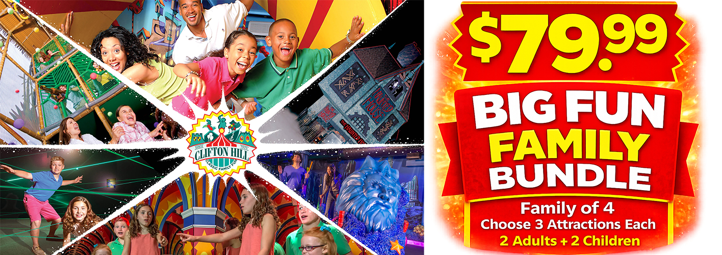 Celebrate 100 Years of FUN with our exclusive Pre-Season Sale! Choose 2, 3, 5 or 7 admissions to your favourite Clifton Hill attractions below. (Admissions valid for 365 days). 1 ticket is required per person, per visit.